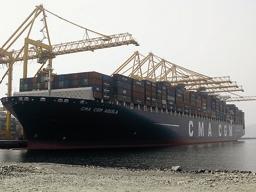 CMA CGM Aquila is one of the largest container ships. (SUPPLIED)