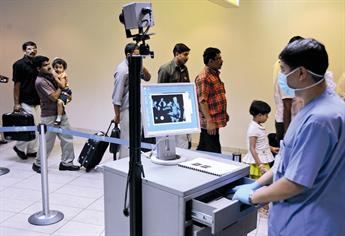 Officials screen passengers for H1N1 virus upon arrival in Abu Dhabi. (SUPPLIED)