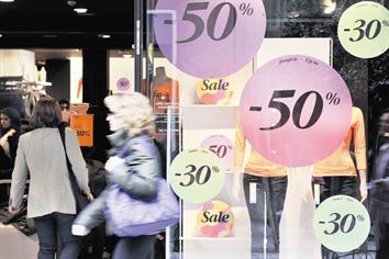 A woman walks past a shop advertising sales in central Athens. Greece may struggle to sell debt this week. (AFP)