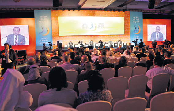 The ninth edition of the Arab Media Forum got under way yesterday in Dubai. More than 2,000 media and academic personalities are attending the two-day event. (LOAY ABU HAYKEL)