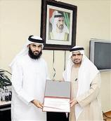 Abdullah Al Madani presenting the award to Majid Ateeq Hareb.