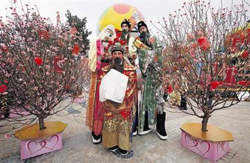 Models dress as deities ahead of the Chinese New Year at Ocean Park in Hong Kong. (AP)