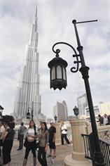 Tourists viewing Souk Al Bahar near Burj Khalifa. The average stay in Dubai in 2010 is 5.6 nights against 4.8 nights in 2009. (EB FILE)