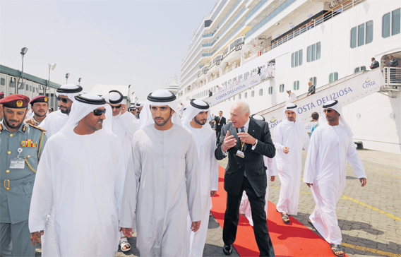 The new Dubai Cruise Terminal was opened yesterday by Sheikh Hamdan bin Mohammed bin Rashid Al Maktoum, Crown Prince of Dubai. Also present were Sheikh Ahmed bin Saeed Al Maktoum, Chairman of Dubai Airports and the Emirates Group, and Sheikh Majid bin Mohammed bin Rashid Al Maktoum, Chairman of the Dubai Culture and Arts Authority.