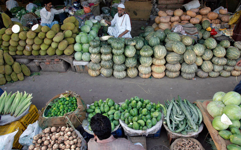 Vendors wait for customers at a wholesale vegetable market in New Delhi June 10, 2010. India's food price index rose 16.74 per cent in the year to May 29, while the fuel price index climbed 14.23 per cent, government data released on Thursday showed. (REUTERS)