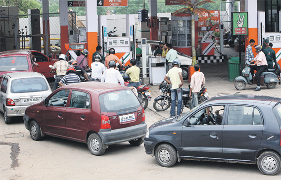 Indian motorists wait in a queue to get petrol and diesel at a filling station in New Delhi. Saudi Arabia supplies nearly a quarter of India's petroleum needs. (AFP)