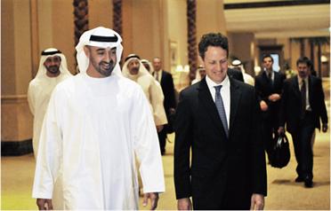 Strengthening ties Sheikh Mohammed bin Zayed Al Nahyan with US Treasury Secretary Tim Geithner. (WAM)