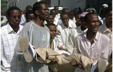 People carry the slain body of Said Tahlil Ahmed, the head of private media house HornAfrik in Mogadishu. (REUTERS)