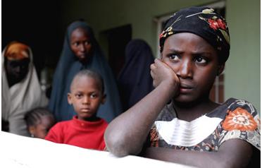 A young girls looks on along with children taking refuge in a police office after being rescued from the Islamic fundamentalists in Maiduguri, Nigeria. (AFP)