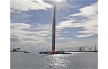 US challenger Oracle giant trimaran sails at Valencia's harbour yesterday. (AFP)