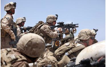 US Marines pick out enemy targets as they receive incoming fire in Main Poshteh, Afghanistan. (GETTY IMAGES)