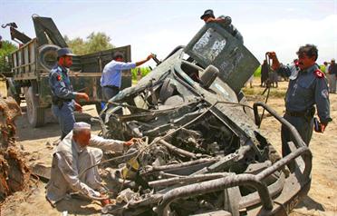 Police inspect a car that was used in a bombing attack (AP)