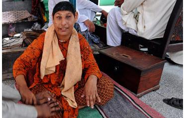 "These are God's children. We are proud to look after her," said Ijaz Hussain, the shrine's government-employed custodian, as Nadia shrieked unintelligibly and put coins in a battered wooden box at her side.