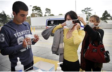 A file picture taken on June 3, 2009, shows young people putting on masks as they arrive at Melbourne's Austin Hospital. Australia's swine flu cases topped 10,000 on July 15, 2009, as officials in the worst-hit Asia-Pacific country reported two more deaths and warned the virus "preferred young people." Health Minister Nicola Roxon said patients' average age was 19, adding that doctors and health workers had been told to watch for young people with trouble breathing