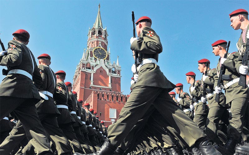 Russian soldiers march through Red Square during the Victory Day parade in Moscow yesterday. (AFP)