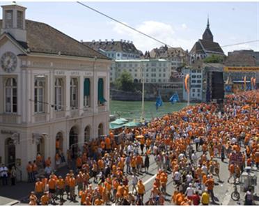 Camping sites in and around the northern Swiss city were taken over by Dutch fans, while some 3,500 filled the Oranje Dorp (Oranje village) to capacity in Bubendorf, south-east of Basel.