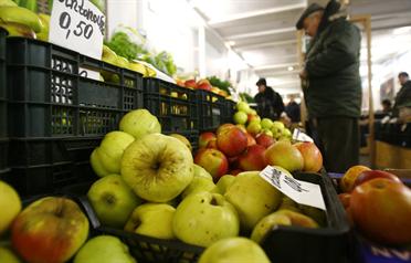People shop in a market in Riga where more and more farmers are starting to sell their products direct to the public in order to get better prices as their incomes have collapsed during the financial crisis. (REUTERS)