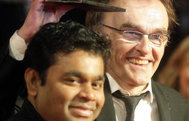 British director Danny Boyle and Indian composer AR Rahman arrive at the British Academy of Film and Television Awards (BAFTA) at the Royal Opera House in central London (AFP)