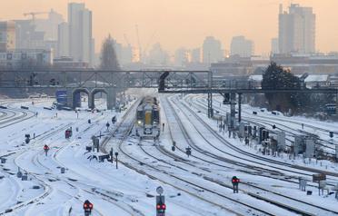 A train arrives at Clapham Junction station in South London as the heaviest snow in nearly 20 years brought parts of the country to a standstill. (REUTERS)