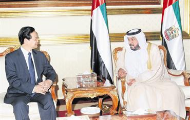 The President His Highness Sheikh Khalifa bin Zayed Al Nahyan, Ruler of Abu Dhabi, received Vietnamese Prime Minister Nguyen Tan Dung at Al Bateen Palace yesterday.
