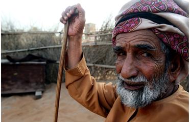 An eldery Emirati man poses at the Heritage Village during the Eid al Fitr holidays in Dubai 2008. (PATRICK CASTILLO)