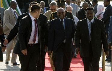 Sudanese President Omar Hassan Al Bashir, centre, arrives at Ataturk International Airport in Istanbul. (REUTERS)