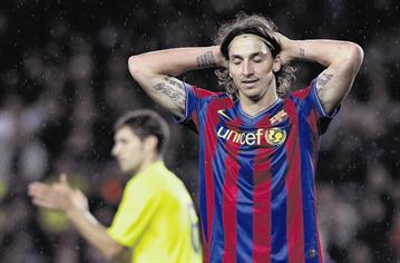 Ibrahimovic misses Barca's next league game through suspension. (REUTERS)