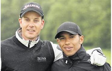 Dubai-based Henrik Stenson poses with F1 world champion Lewis Hamilton at the Pro-Am to open the European Open in Kent. Both men will likely be in the UAE this November as Swede Stenson is expected to compete in the Dubai World Championship from November 19, while Hamilton will race in the Abu Dhabi Grand Prix on November 1.