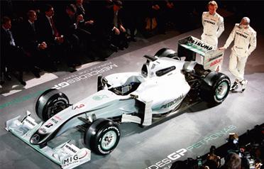 The Mercedes museum was a fitting backdrop for a Mercedes-powered car, albeit largely designed by Honda, that carved its place in Formula One history by winning Brawn the constructors' crown at the first attempt. The new Mercedes MGP W01, the first 'Silver Arrow' since Mercedes last competed as a works team in 1955, will make its debut when testing starts at Spain's Valencia circuit on February 1.