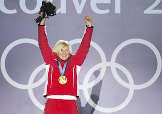 Austria's Andrea Fischbacher upset American speed queen Lindsay Vonn to win the women's Olympic super-G final on Saturday as Korea's Lee Jung-Su and Swiss Simon Ammann grabbed their second golds of the Vancouver Games.