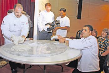 Chefs Kamal Mouzawak from Lebanon, left, and Tareq Ibrahim from Egypt at Gourmet Abu Dhabi 2009. (SUPPLIED)