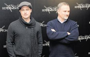 Hollywood superstar Brad Pitt and award-winning director David Fincher pose during a photocall in Paris. (AFP)