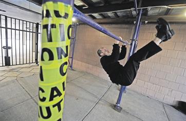 The first clue that something might be different is when Averbukh starts doing pull-ups from a section of scaffolding. Deceptively strong for his frame, Averbukh pulls himself up with ease, then goes to a wall to stand on his hands. "I like to do my exercise before I eat," he says. "The diet and exercises go together. It was part of our ancestors' lives. They had to exercise because they were hunting for food. We still need it."