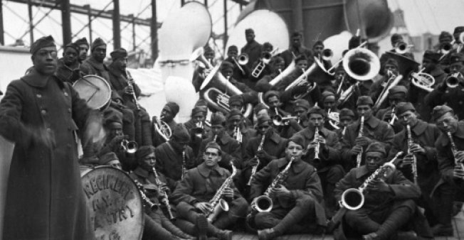 A hundred years ago in World War One, a group of American soldiers stormed Europe -- not to the boom of guns, but the swinging rhythm of saxophones, drums and horns.