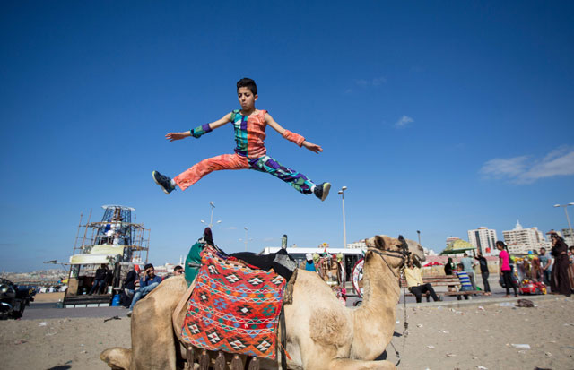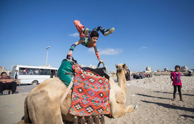 So he is left with escapism - braving danger carrying out stunts on the back of a camel or a horse galloping on a Gaza beach, to the amazement of flabbergasted onlookers.
