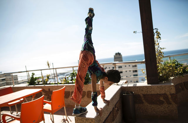 Palestinian teenager Mohammed al-Sheikh, 12, shows his skills in Gaza city on April 28, 2016. Mohammed al-Sheikh is only 12 and feels trapped in Gaza but he dreams of a Guinness world record for a series of stunning backflips and his almost unbelievable body contortions. (AFP)
