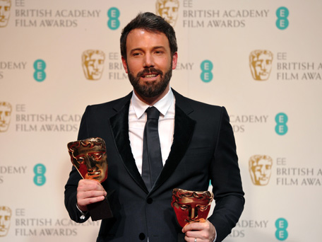 US actor and director Ben Affleck poses with the Best Film and Best Director awards for his film Argo during the annual BAFTA British Academy Film Awards at the Royal Opera House in London on February 10, 2013. (AFP)