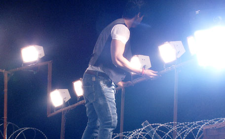Reality show Bigg Boss 7 contestant Kushal Tandon climbs the barb wired wall to cross the boundary of the house. (SUPPLIED)