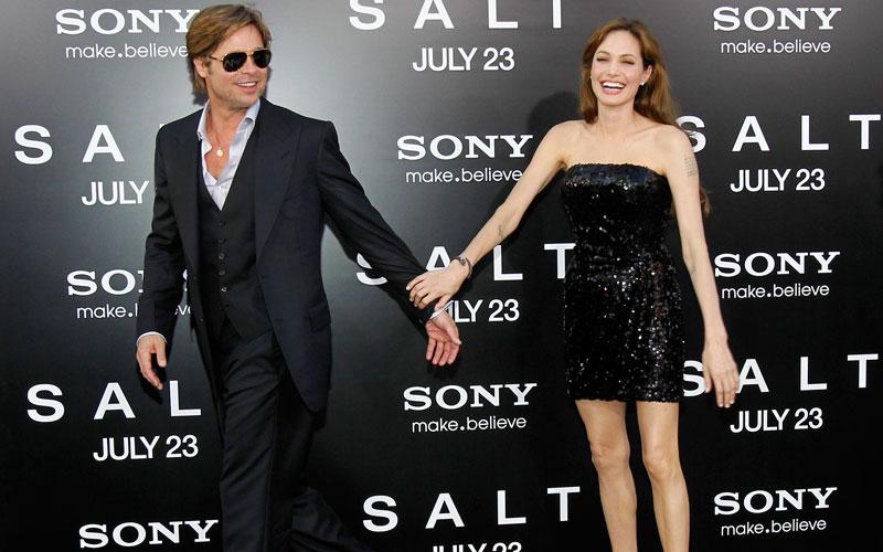 Cast member Angelina Jolie and actor Brad Pitt arrive at the premiere of the movie "Salt" at the Grauman's Chinese theatre in Hollywood, California July 19, 2010. (REUTERS)