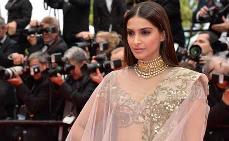 Indian actress Sonam Kapoor poses as she arrives for the screening of the film "Foxcatcher" at the 67th edition of the Cannes Film Festival in Cannes, southern France, on May 19, 2014. (AFP)