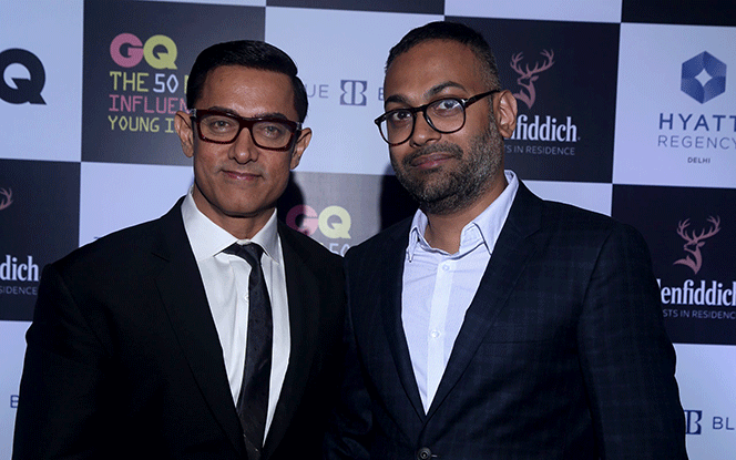 Aamir Khan was spotted at the GQ 50 Most Influential Young Indians in the capital. The actor sported a geeky look for the event wearing a black tuxedo teamed up with spectacles.