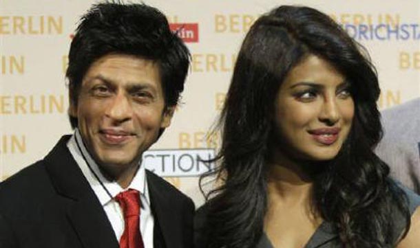 Indian actor Shah Rukh Khan (L) and actress Priyanka Chopra poses during a photocall to promote their movie 'Don-2' in Berlin. (REUTERS)