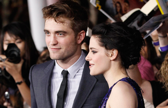 Cast members Robert Pattinson and Kristen Stewart pose at the premiere of "The Twilight Saga: Breaking Dawn - Part 1" at Nokia Theatre in Los Angeles. The movie opens in the US on Friday. (REUTERS)