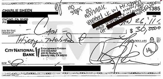 The actress immediately presented the cheque at the bank in question, where the teller called the Sheen and one of his associates for verification purposes -- both okayed the transaction.