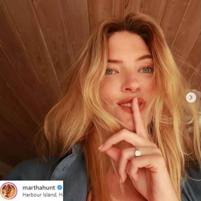 Martha posted a picture of herself with her finger to her lips and an engagement ring can be seen proudly displayed, and she added the caption: "i have a secret... "