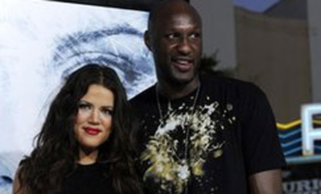 Khloe Kardashian and Los Angeles Lakers basketball player Lamar Odom pose together at the premiere of the film 'Whiteout' in Los Angeles. (AP)