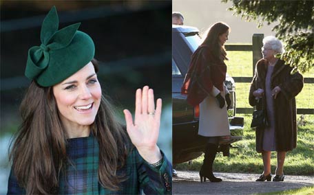 Queen Elizabeth II, and Catherine, Duchess of Cambridge arrive at the Christmas Day service at Sandringham in King's Lynn, England. (Photo Getty Images)