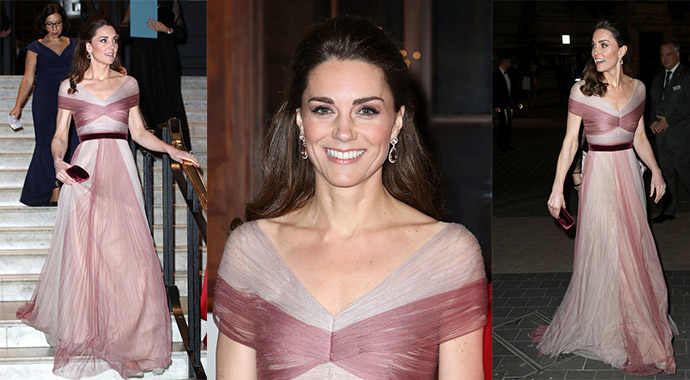Catherine, the Duchess of Cambridge, patron of 100 Women in Finance's Philanthropic Initiatives, arrives at a Gala Dinner in aid of Mentally Healthy Schools at the Victoria and Albert Museum in London.