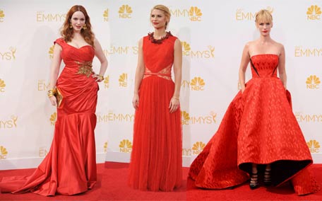 Christina Hendricks arrives at the 66th Annual Primetime Emmy Awards at the Nokia Theatre L.A. Live. (AP)