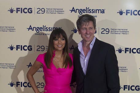 Eva Longoria and director Michel Berry arrive at the premiere of his new film "Border", during the International Film Festival of Guadalajara in Guadalajara, Mexico. (AP)